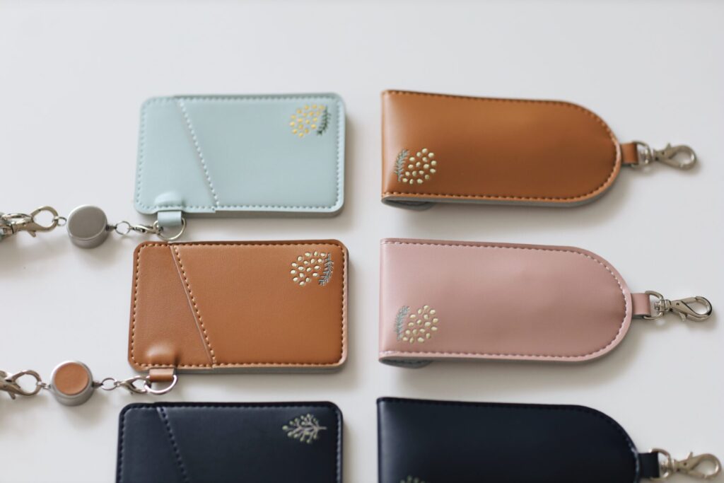 たくさん悩んで出会えた大切なランドセル、リュッセルとおそろいを楽しめる小物をつくりました。ランドセルや習い事のバッグに装着してお使いいただけるキーケースやパスケースは、リール付きで使い勝手も◎
