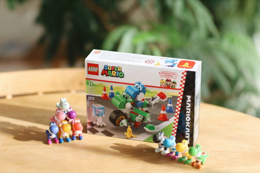 ヨッシーバイクを走らせられて、甲羅を飛ばせるギミック付き。24日に分けて作るのにもちょうどいいボリューム感でした。